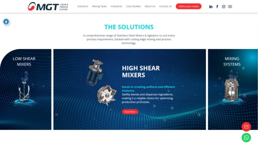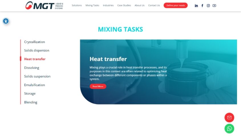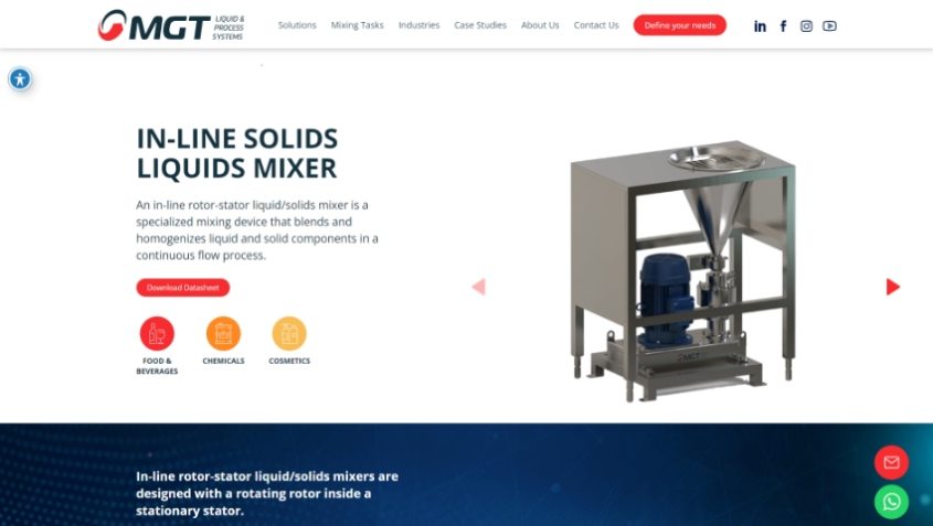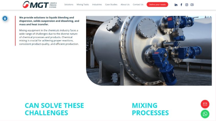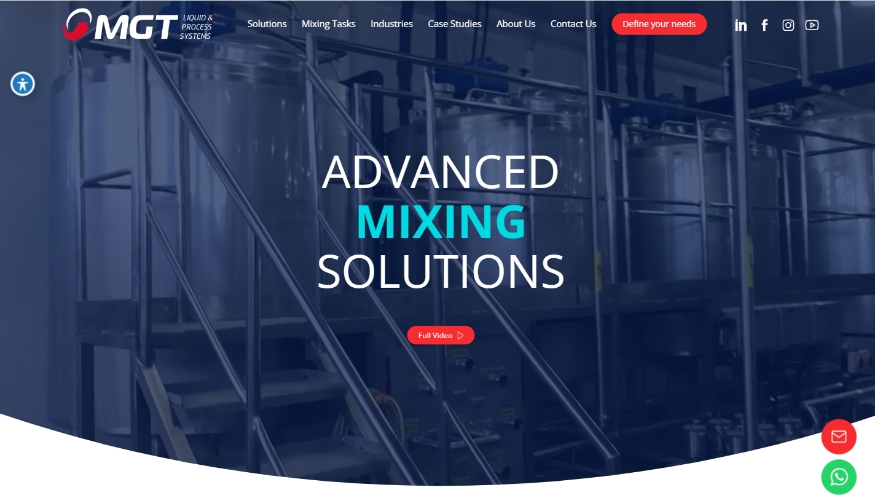 MGT מתמחה בתכנון, ייצור וייצור עצמי של ציוד ופתרונות ערבוב חדישים.