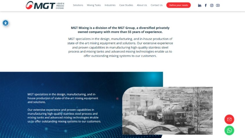 MGT specializes in the design, manufacturing, and in-house production of state-of-the-art industrial mixing equipment and solutions. High shear mixers, low shear mixers, industrial mixing systems. With decades of expertise, MGT delivers reliable, high-performance stainless steel process tanks and innovative industrial mixing technologies.